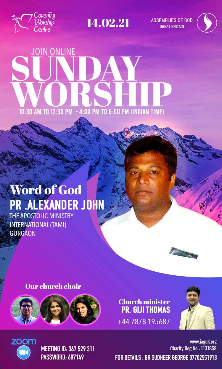 Sunday worship – Pr Alexander John 14-02-21 Posted byCWCAOGFebruary 12, 2021Posted inUpdates Share this: Share on X (Opens in new window) X Share on Facebook (Opens in new window) Facebook Like Loading...