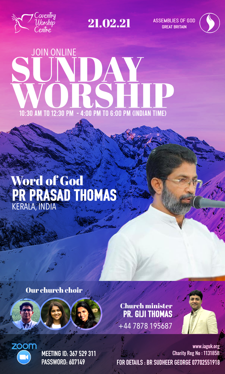 21-02-21 Sunday service – Pr Prasad Thomas Posted byCWCAOGFebruary 20, 2021Posted inUpdates Share this: Share on X (Opens in new window) X Share on Facebook (Opens in new window) Facebook Like Loading...
