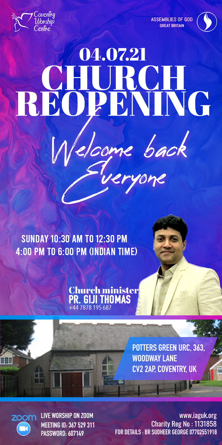 Church reopening on 04-07-21 Posted byCWCAOGJuly 3, 2021Posted inUpdates Share this: Share on X (Opens in new window) X Share on Facebook (Opens in new window) Facebook Like Loading...